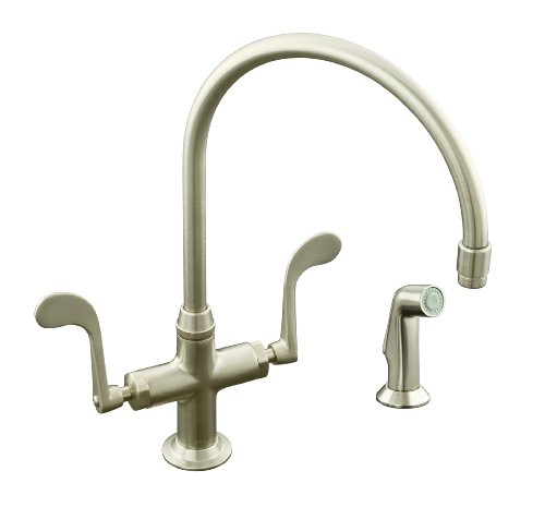 This Very best Selling KOHLER K-8763-BN Essex Kitchen Sink Faucet, Vibrant Brushed Nickel, One of many finest wanting and that is out a person the marketplace. You may get specific discount for KOHLER K-8763-BN Essex Kitchen Sink Faucet, Vibrant Brushed Nickel. You can choose to buy a product and KOHLER K-8763-BN Essex Kitchen Sink Faucet, Vibrant Brushed Nickel at the Best Selling price On the internet with Secure Transaction Here...Description : Finish/Color:Vibrant Brushed Nickel, Faucet Centers*:Requires Two Holes Wristblade Handles Includes Matching Finish Side spray One-piece Ceramic Valve - Resists debris and hard water build-up Ergonomic Handle Rotation - Provides on/off water control with only a quarter turn Two Hole Installation Solid Brass Construction -- Ensures years of reliable performance Lifetime Limited Warranty-Covers function and finish for as long as the original consumer purchaser owns his/her home Resists scratches, corrosion, and tarnishing Complies with the actuation force accessibility Guidelines (Section 4.27.4 Operation) of the Americans with Disabilities Act 9-1/4' gooseneck swing spout, wristblade handles 2.5 gpmThe Essex faucet, with wristblad...